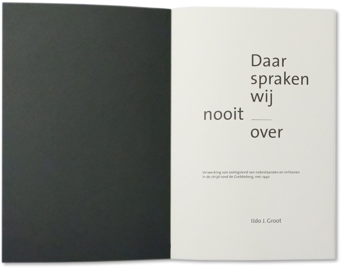 Dit boek is gemaakt in opdracht van de Oorlogsgraven Stichting en is gebaseerd op de gelijknamige tentoonstelling in het informatiecentrum van het militair ereveld Grebbeberg. Een tentoonstelling over de verwerking van oud militairen, hun naasten en nabestaanden van de strijd rond de Grebbeberg in 1940.