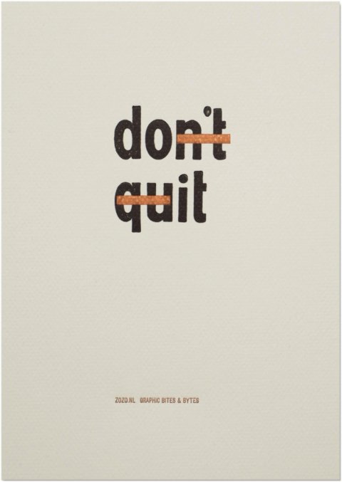 Iedereen heeft wel eens een 'ik geef het op' moment om tegen te vechten. Een aanmoediging (do it) klinkt dan veel positiever dan het negatieve don't quit, toch? Eentje voor aan de muur dus, en daarom op iets groter formaat en op papier met een prachtige structuur. Voor jezelf, of om te geven aan iemand die de boodschap goed kan gebruiken!