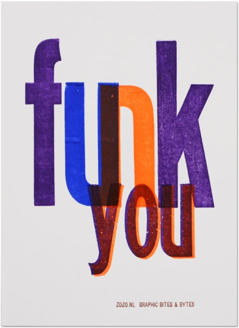 Funk you is de tegenhanger van de bekende verbale middelvinger. Een grafische knipoog voor funk lovers.