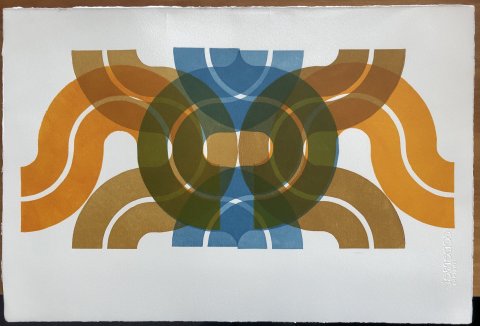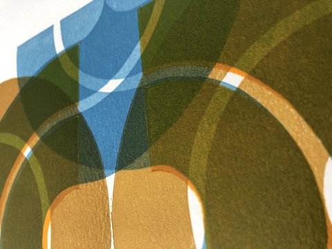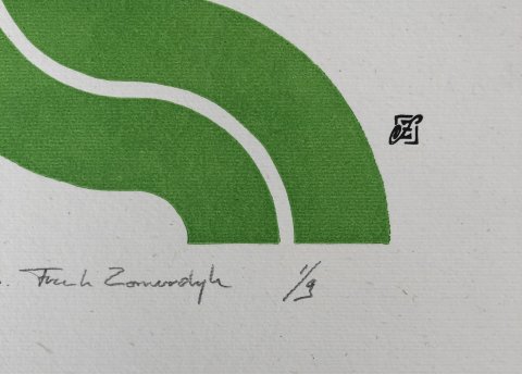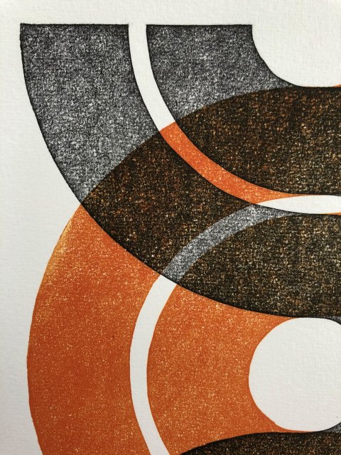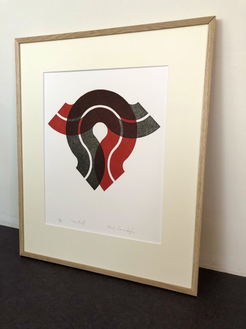 In een serie verken ik de mogelijkheden om nieuwe beelden te creéren met slechts één simpele basisvorm, een linosnede. De mogelijkheden zijn bijna eindeloos en zo nu en dan pak ik 'm dan ook weer op voor weer een nieuw experiment...