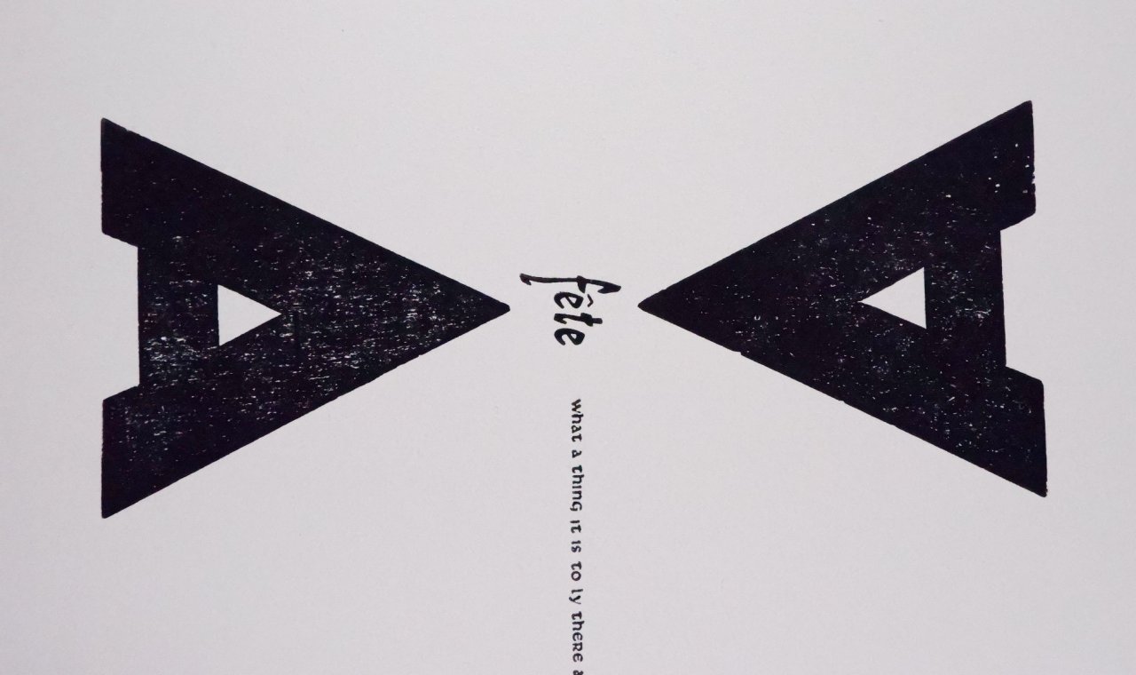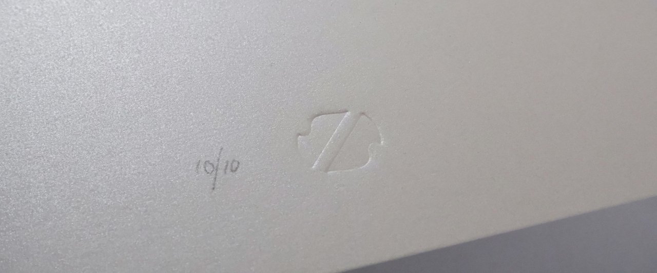 Gedrukt op een zware onbekende papiersoort in iets gebroken wit, met een licht metallic gloed er overheen. Gezet in houten letter in combinatie met de 48 punts Reinier script en de 12 punts Libra, voorzien van ZO press logo in blinddruk en genummerd.