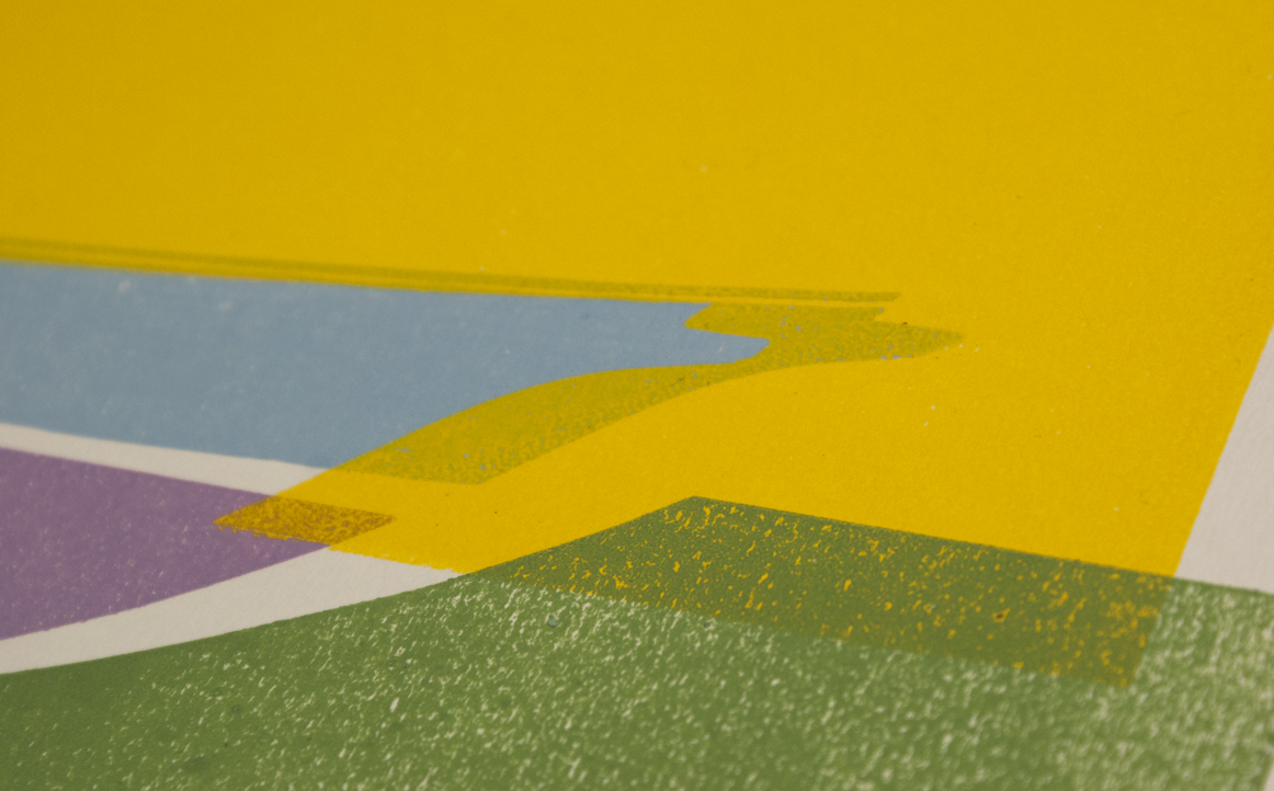 Gedrukt op 180 grams Rives Natural in een oplage van 9 stuks. 4 drukgangen met het ZO press logo blindgedrukt en genummerd. Formaat 64 x 32 cm